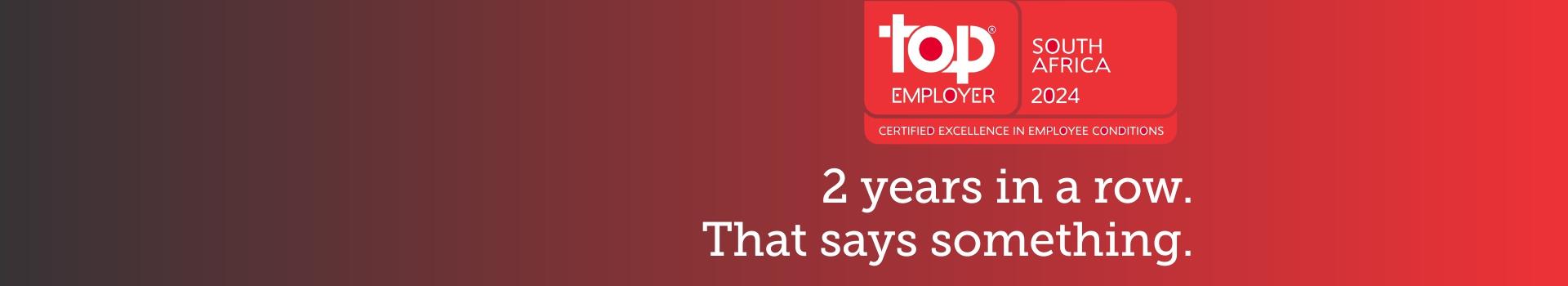Certified Top Employer in South Africa for 2 consecutive years, recognising our excellence in employee conditions.